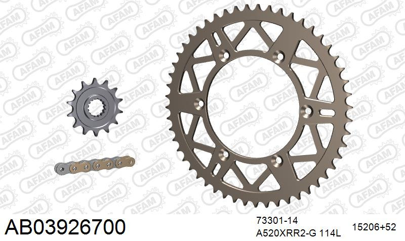 wishlist porównaj Szybki podgląd Nowy AFAM AFAM Zestaw napędowy (stal) YAMAHA DT 250 MX 1980-1982 (łańcuch A520MR2-G 104L, zębatki 15, 46) 326,00 zł Dodaj do koszyka Dostępność: Out of stock