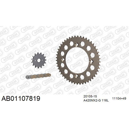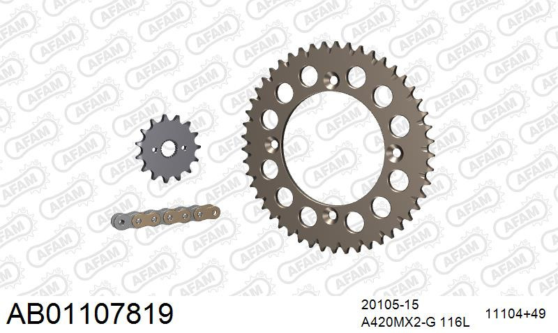 wishlist porównaj Szybki podgląd Nowy AFAM AFAM Zestaw napędowy (alu, AB) KTM SX 105 2004-2006 (łańcuch A428MX-G 122L, zębatki 14, 49) 444,00 zł Dodaj do koszyka Dostępność: Out of stock