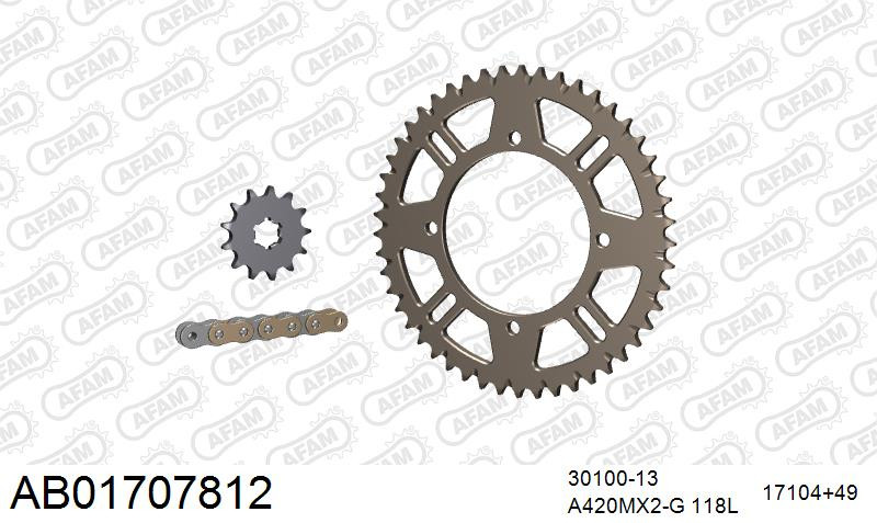 wishlist porównaj Szybki podgląd Nowy AFAM AFAM Zestaw napędowy (alu) KAWASAKI KX 85 428 SMALL WHEEL 2003-2023 (łańcuch A428MX-G 120L, zębatki 14, 50) 403,00 zł Dodaj do koszyka Dostępność: Out of stock