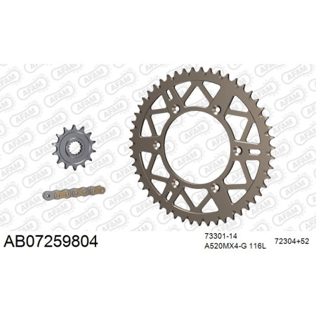 wishlist porównaj Szybki podgląd Nowy AFAM AFAM Zestaw napędowy (alu, AB) KTM SX 105 2004-2006 (łańcuch A428MX-G 122L, zębatki 14, 49) 444,00 zł Dodaj do koszyka Dostępność: Out of stock