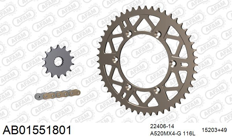 wishlist porównaj Szybki podgląd Nowy AFAM AFAM Zestaw napędowy (alu, AB) YAMAHA 450 YZF 2006-2014 (łańcuch A520MX6-GG 114L, zębatki 13, 49) 580,00 zł Dodaj do koszyka Dostępność: Out of stock
