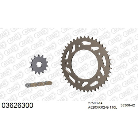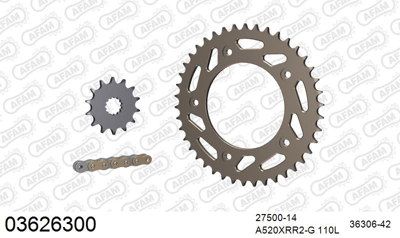wishlist porównaj Szybki podgląd Nowy AFAM AFAM Zestaw napędowy (alu) SHERCO SE 300 2021-2024 (łańcuch A520XRR3-G 114L, zębatki 13, 48) 576,00 zł Dodaj do koszyka Dostępność: Out of stock