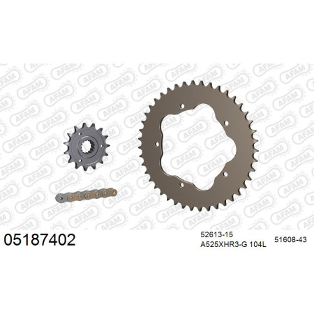 AFAM Zestaw napędowy (alu) DUCATI 998 S4R S TESTA FOR PCD2 2006-2008 (łańcuch A525XHR3-G 104L, zębatki 15, 43)