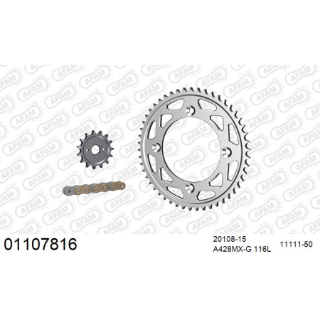 wishlist porównaj Szybki podgląd Nowy AFAM AFAM Zestaw napędowy (stal, SLK) KTM SX 150 2012-2022 (łańcuch A520MR2-G 114L, zębatki 13, 48) 398,00 zł Dodaj do koszyka Dostępność: Out of stock