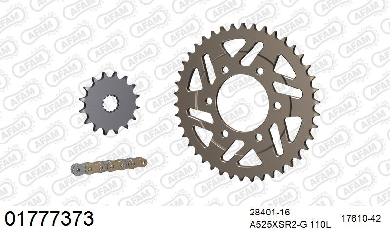 wishlist porównaj Szybki podgląd Nowy AFAM AFAM Zestaw napędowy (stal) TRIUMPH THRUXTON 1200 2016-2023 (łańcuch A525XSR2-G 100L, zębatki 16, 42) 547,00 zł Dodaj do koszyka Dostępność: Out of stock