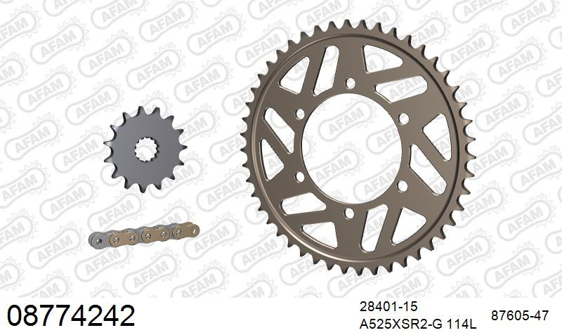 wishlist porównaj Szybki podgląd Nowy AFAM AFAM Zestaw napędowy (stal) SUZUKI SV 650 ABS 2016-2023 (łańcuch A520XSR-G 112L, zębatki 15, 46) 558,00 zł Dodaj do koszyka Dostępność: Out of stock
