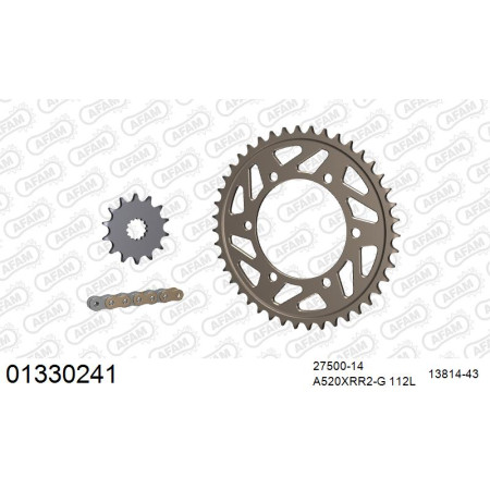 wishlist porównaj Szybki podgląd Nowy AFAM AFAM Zestaw napędowy (alu) HUSQVARNA 250 TE 2010-2013 (łańcuch A520XRR3-G 116L, zębatki 13, 50) 583,00 zł Dodaj do koszyka Dostępność: Out of stock