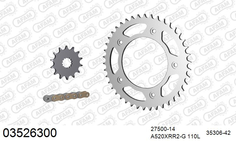 wishlist porównaj Szybki podgląd Nowy AFAM AFAM Zestaw napędowy (stal) HUSQVARNA TE 350 1992-1995 (łańcuch A520XRR3-G 116L, zębatki 12, 48) 523,00 zł Dodaj do koszyka Dostępność: Out of stock
