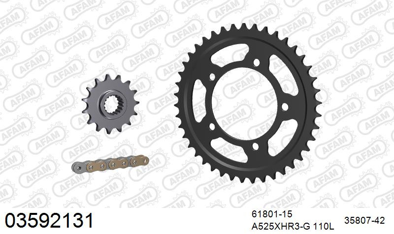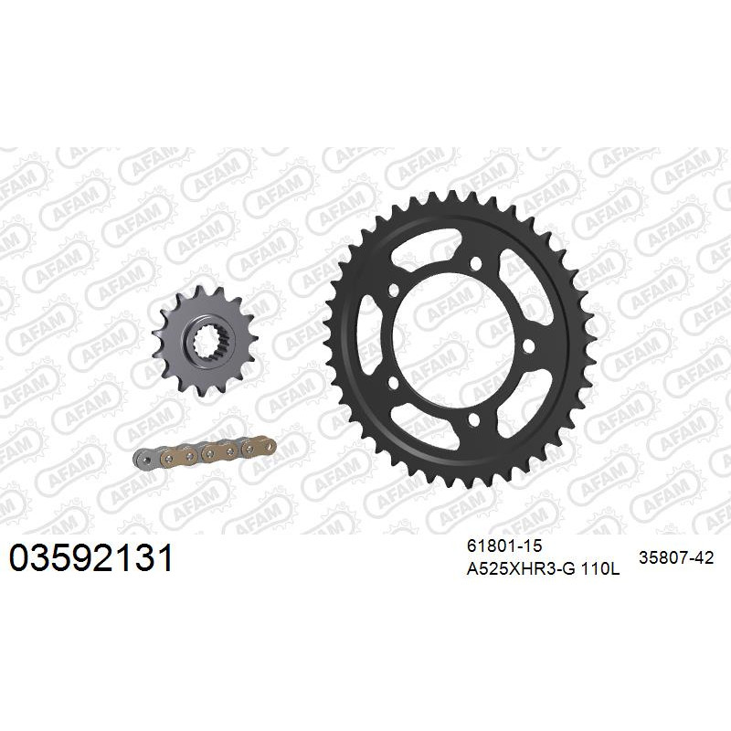 AFAM Zestaw napędowy (stal) APRILIA TUONO 1100 RR-FACT 2015-2021 (łańcuch A525XHR3-G 110L, zębatki 15, 42)