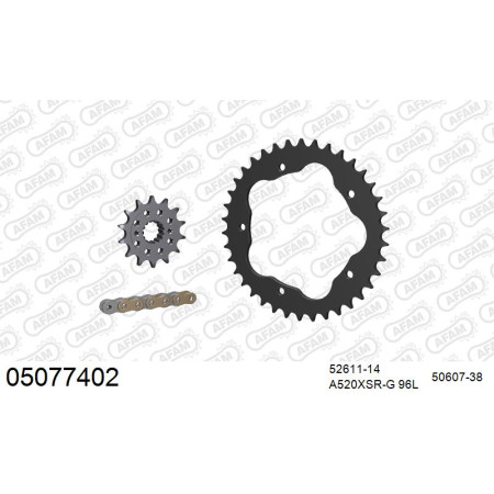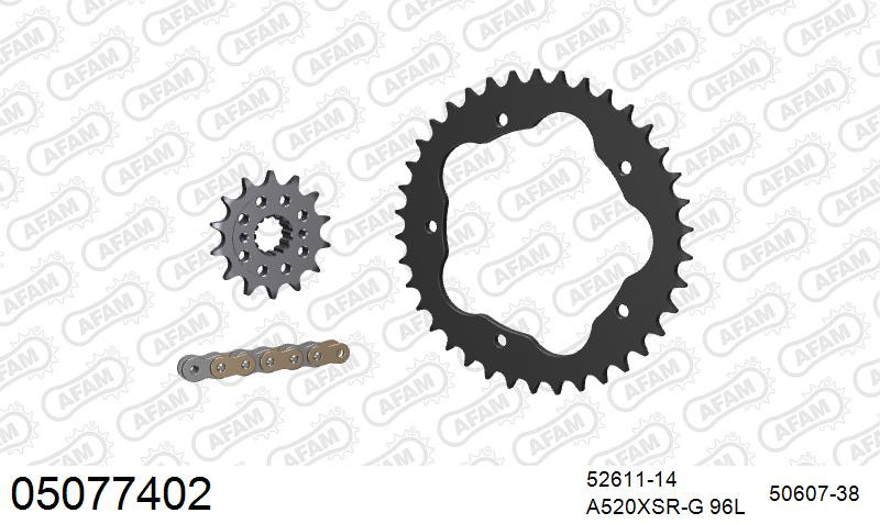 AFAM Zestaw napędowy (stal) DUCATI 748 FOR PCD1 1995-2002 (łańcuch A520XSR-G 96L, zębatki 14, 38)