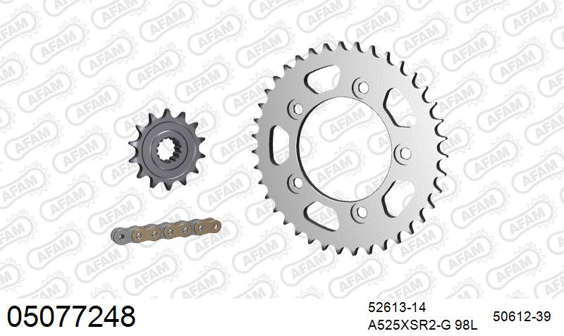 AFAM Zestaw napędowy (stal) DUCATI 749 2003-2007 (łańcuch A525XSR2-G 98L, zębatki 14, 39)