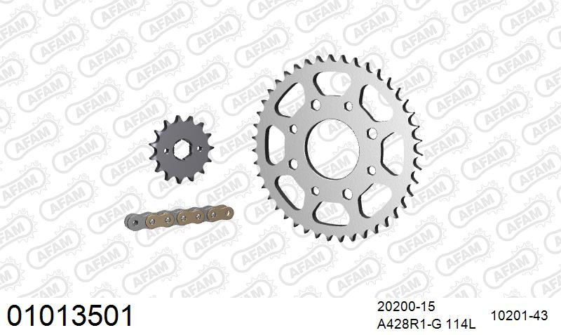 wishlist porównaj Szybki podgląd Nowy AFAM AFAM Zestaw napędowy (stal) KAWASAKI KH 125 A1-A4 1977-1982 (łańcuch A428R1-G 112L, zębatki 14, 47) 213,00 zł Dodaj do koszyka Dostępność: Out of stock
