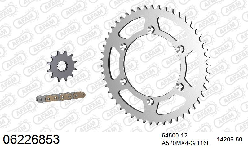 wishlist porównaj Szybki podgląd Nowy AFAM AFAM Zestaw napędowy (alu, AB) KAWASAKI KX 450 XC 2021-2023 (łańcuch A520MX6-GG 114L, zębatki 13, 51) 592,00 zł Dodaj do koszyka Dostępność: Out of stock