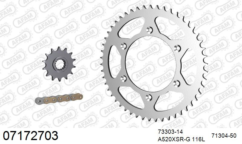 wishlist porównaj Szybki podgląd Nowy AFAM AFAM Zestaw napędowy (alu) YAMAHA YZF 1000 R1 2004-2005 (łańcuch A530XHR2-G 116L, zębatki 17, 45) 950,00 zł Dodaj do koszyka Dostępność: Out of stock