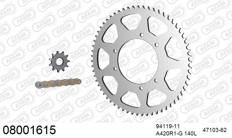 wishlist porównaj Szybki podgląd Nowy AFAM AFAM Zestaw napędowy (alu, AB) KAWASAKI KX 100 1998-2013 (łańcuch A420MX2-G 124L, zębatki 13, 51) 372,00 zł Dodaj do koszyka Dostępność: Out of stock