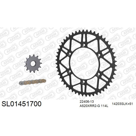 wishlist porównaj Szybki podgląd Nowy AFAM AFAM Zestaw napędowy (alu, AB) HUSQVARNA TC 250 2002-2003 (łańcuch A520MR2-G 116L, zębatki 14, 50) 465,00 zł Dodaj do koszyka Dostępność: Out of stock