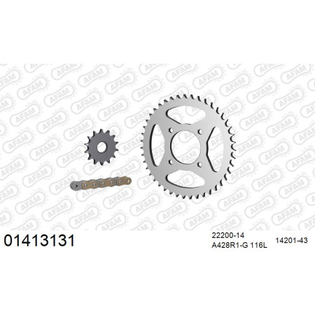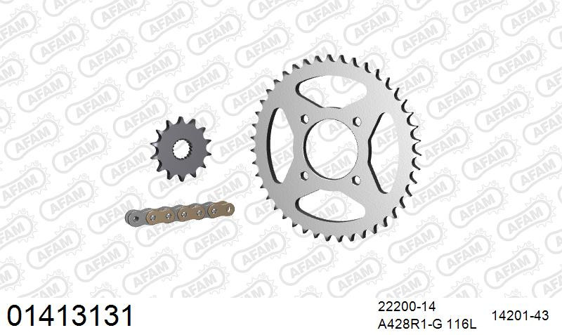 wishlist porównaj Szybki podgląd Nowy AFAM AFAM Zestaw napędowy (stal) KAWASAKI KH 125 A1-A4 1977-1982 (łańcuch A428R1-G 112L, zębatki 14, 47) 213,00 zł Dodaj do koszyka Dostępność: Out of stock