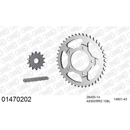 wishlist porównaj Szybki podgląd Nowy AFAM AFAM Zestaw napędowy (stal) BETA 50 RR 2002-2005 (łańcuch A420R1-G 126L, zębatki 12, 51) 214,00 zł Dodaj do koszyka Dostępność: Out of stock