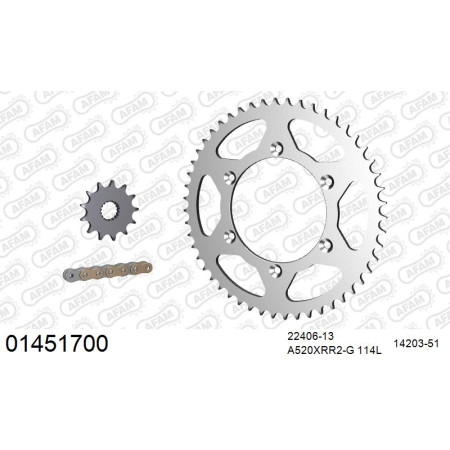 wishlist porównaj Szybki podgląd Nowy AFAM AFAM Zestaw napędowy (alu, AB) YAMAHA 250 YZF 2005-2008 (łańcuch A520MX6-GG 112L, zębatki 13, 49) 576,00 zł Dodaj do koszyka Dostępność: Out of stock