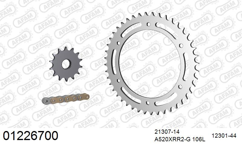 wishlist porównaj Szybki podgląd Nowy AFAM AFAM Zestaw napędowy (alu) YAMAHA YZF 1000 R1 2006-2008 (łańcuch A530XHR2-G 118L, zębatki 17, 45) 960,00 zł Dodaj do koszyka Dostępność: Out of stock